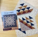 Vintage Sampler by Nancy Rink consists of twenty-five traditionally pieced blocks in an on-point setting with sashing. Pattern is a full-color 24-page soft cover saddle stitched booklet.